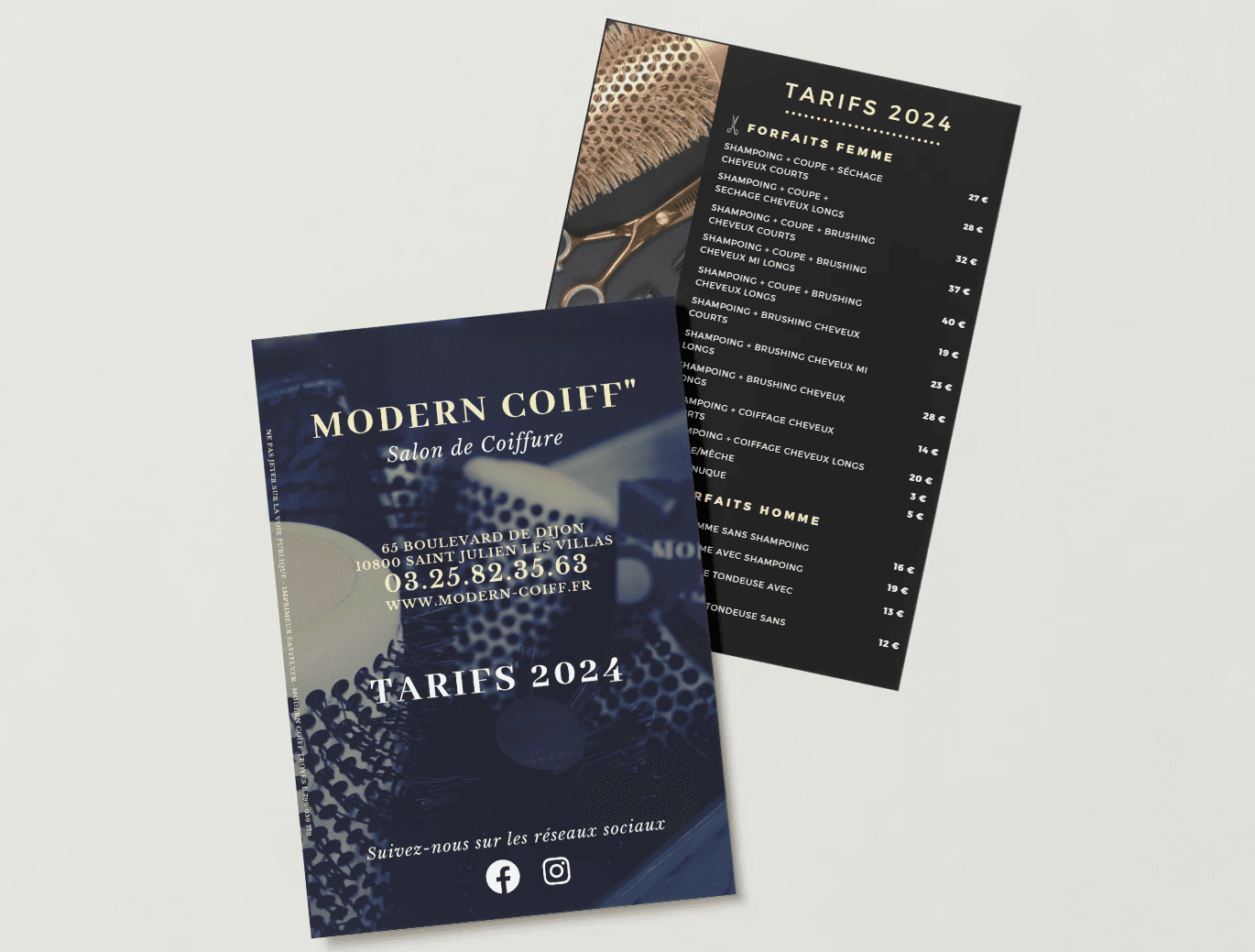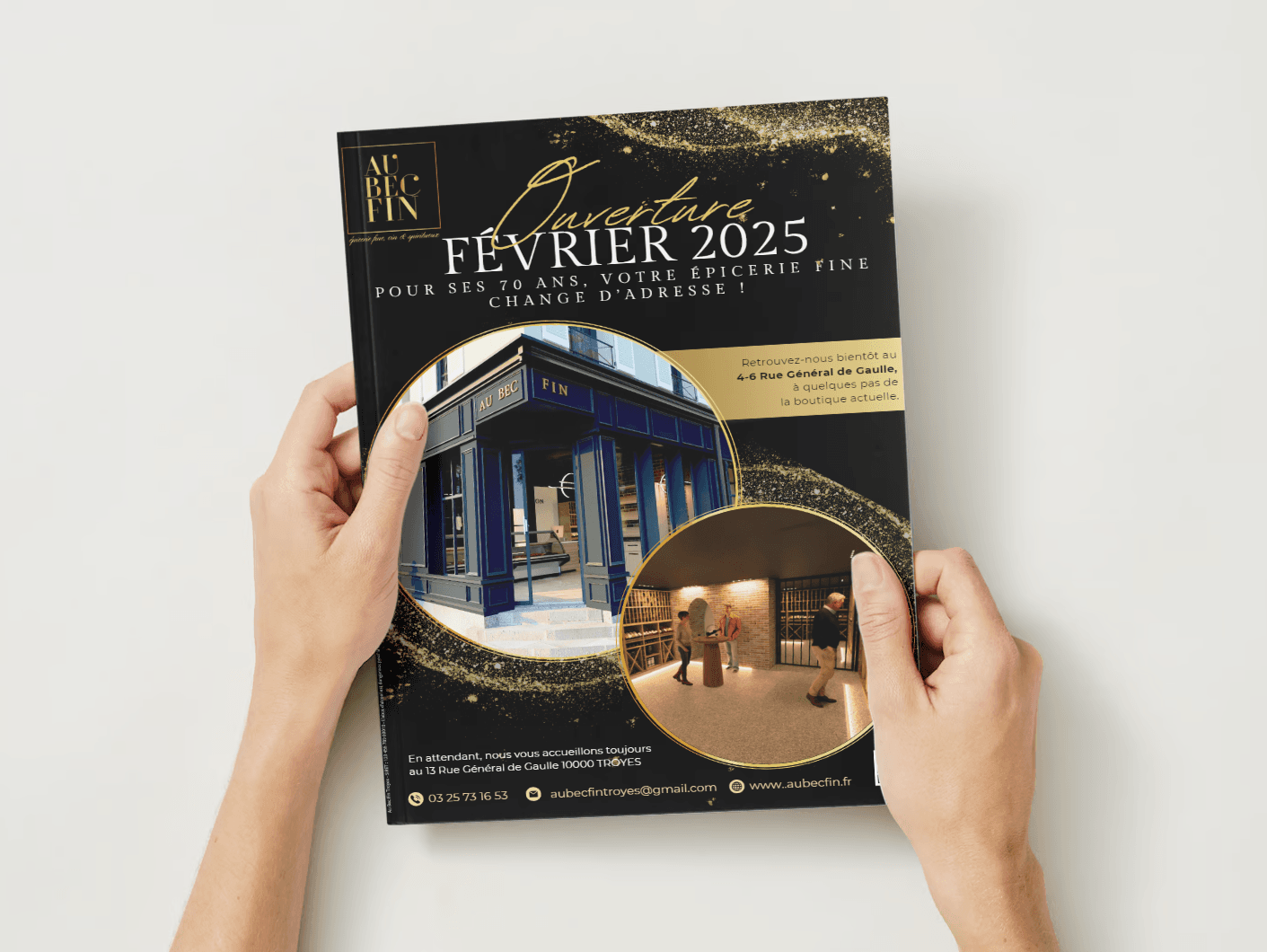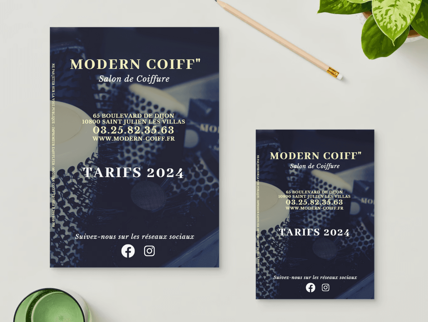 - Flyers, cartes de visite, affiches, brochures : des supports print soignés pour marquer les esprits.