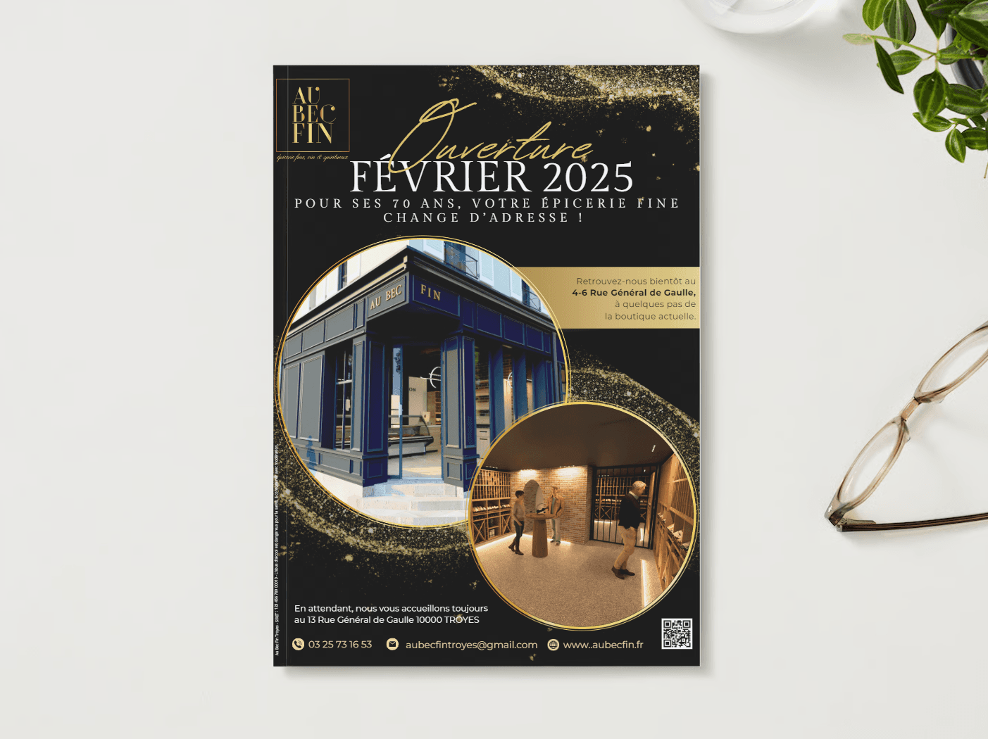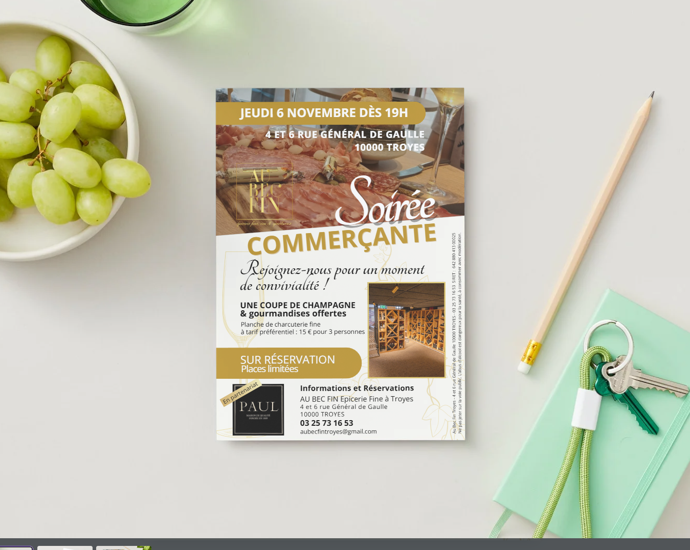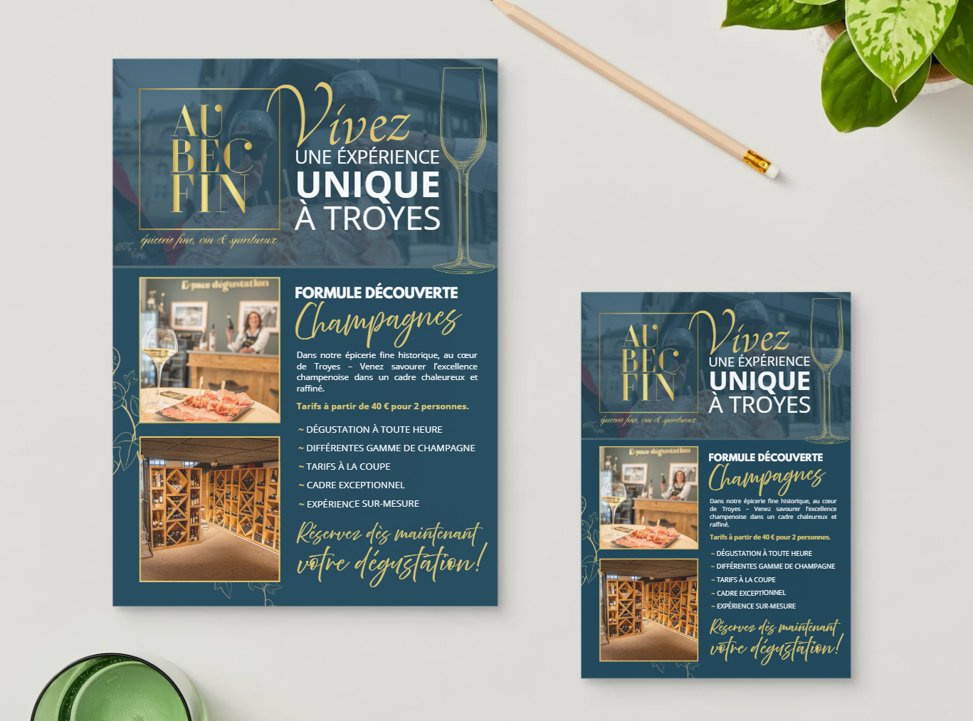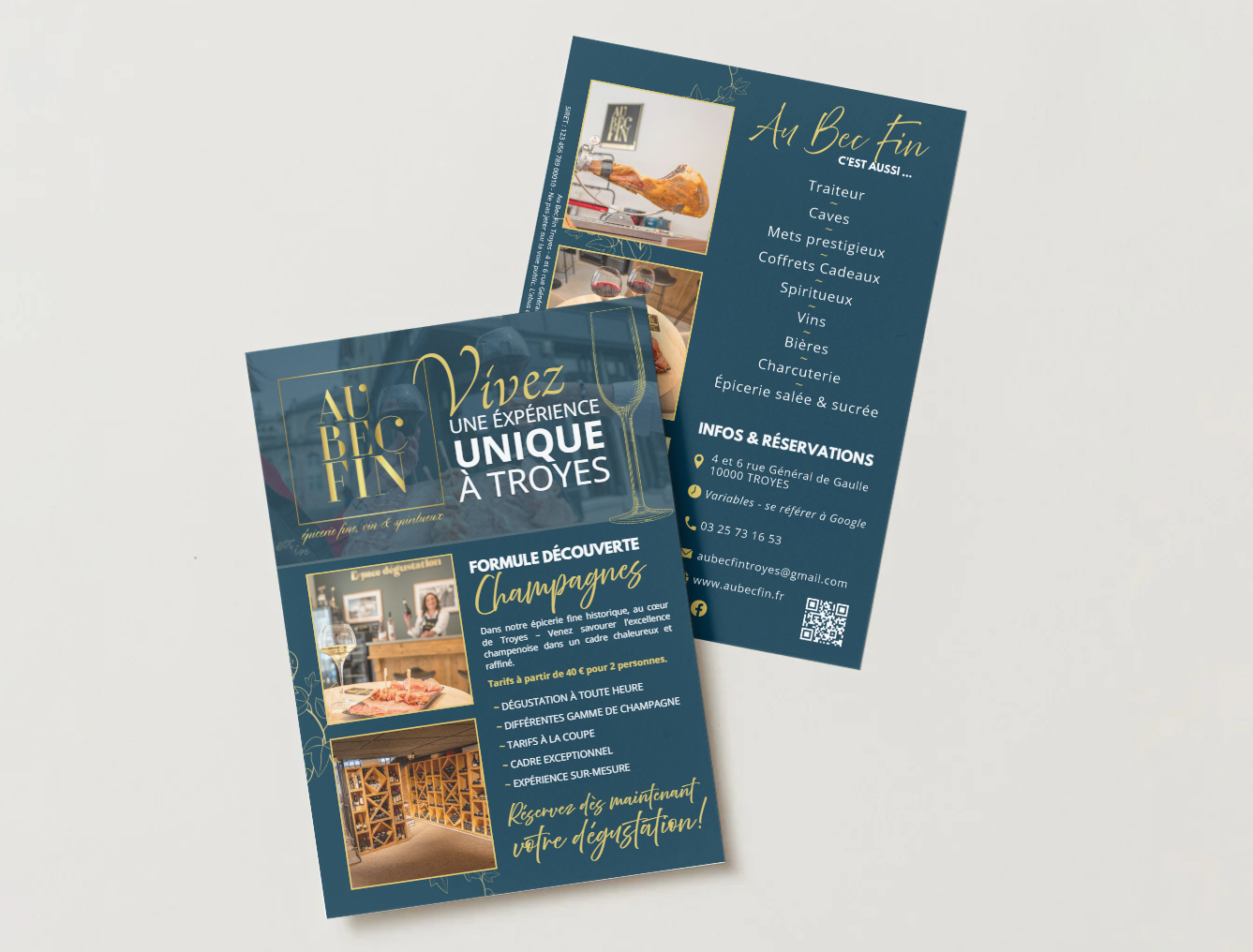 - Flyers, cartes de visite, affiches, brochures : des supports print soignés pour marquer les esprits.